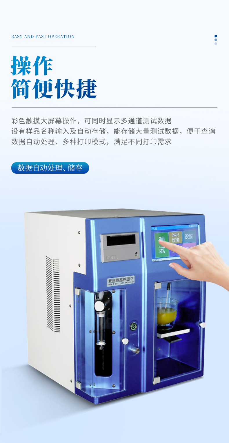 ●設有小容量注射液(小針劑)專用測試程序,可根據小針劑的規格進樣,并在測試完成后自動轉換成容器微粒的大小及數量,符合《中國藥典》及國際通用要求。