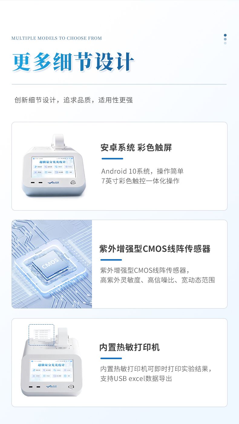 生命科學與醫(yī)學研究:為高校、科研院所及醫(yī)院實驗室,提供核酸濃度測量、蛋白質(zhì)定量、微生物生長監(jiān)測的基礎檢測支持。