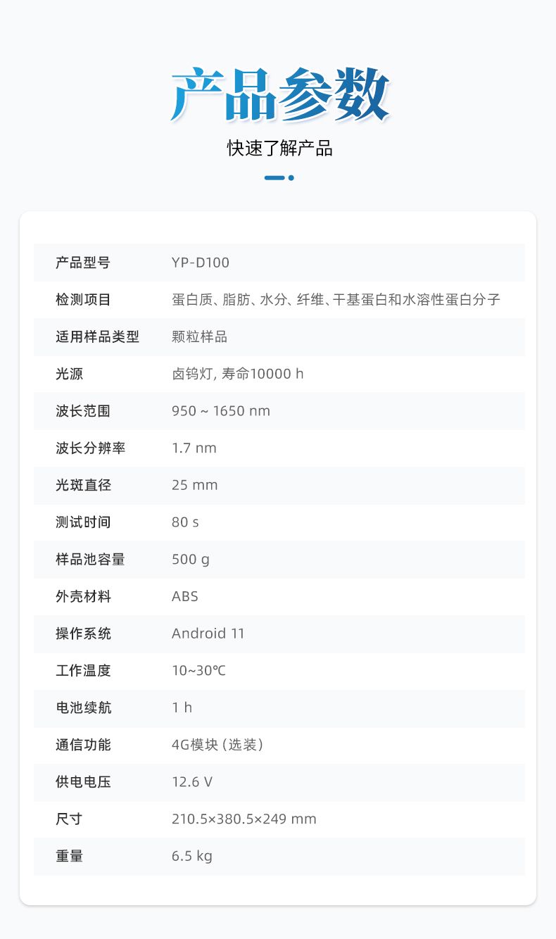 4. 分析速度快:大豆指標在1 ~ 1.5 min內完成測量;