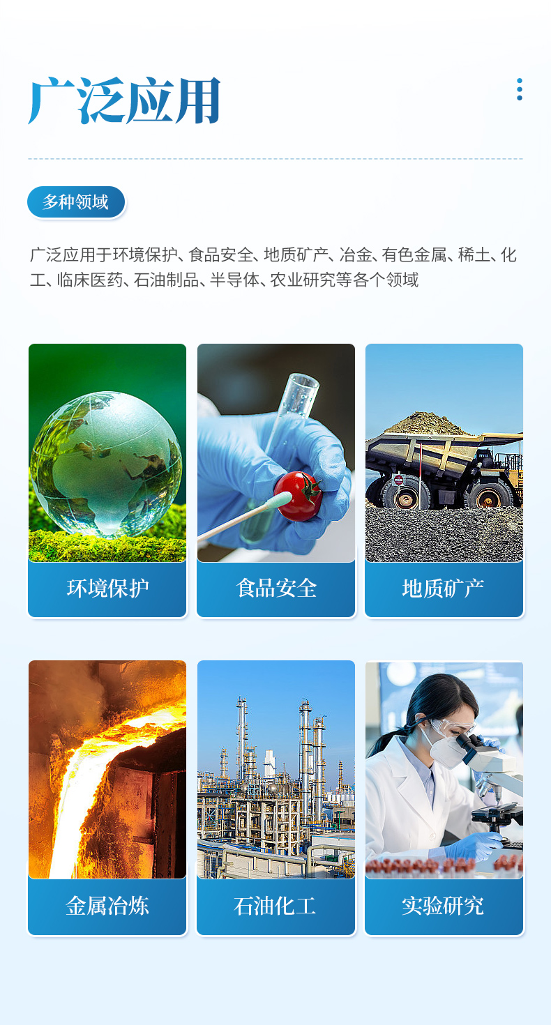 4、檢出限低,絕大多數(shù)元素可達(dá) ppb 級(jí)。