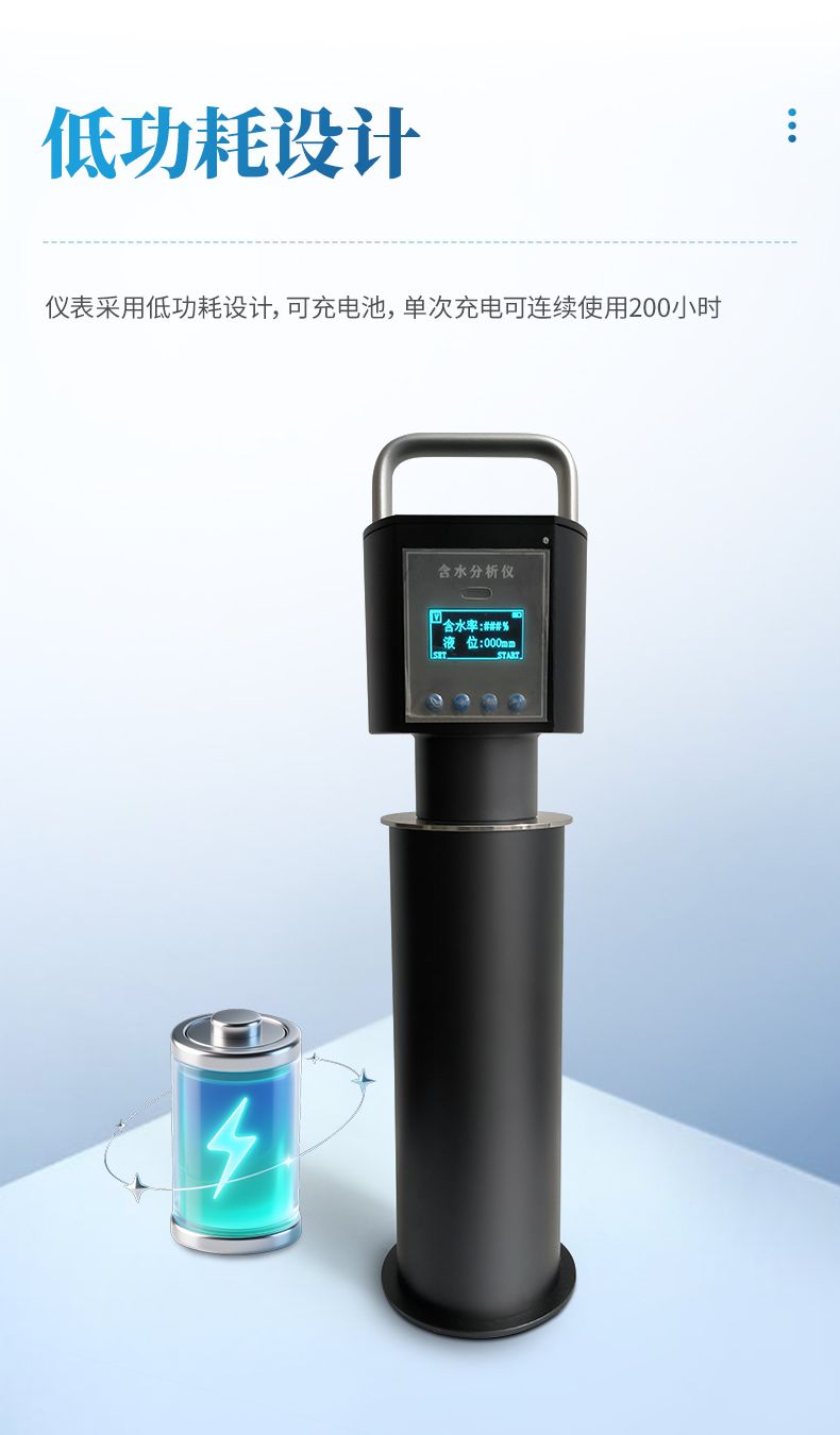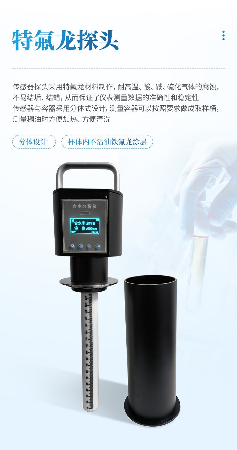 4、使用過程中省去了較耽擱時間的冷凍去明水,均勻攪拌、蒸餾、人工計算等流程。將測量探頭插入取樣量杯(量杯可以直接用取樣筒代替)中就可以迅速給出測量出結果。