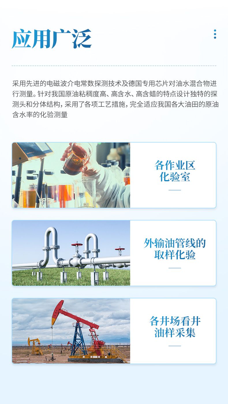 油田增壓點等外輸管線的取樣口往往需要定時、頻繁的取樣,保證對對管線內原油的含水率進行準確的掌握,采用便攜式含水分析儀可以快速、便捷的探測出管線內原油的含水率情況。