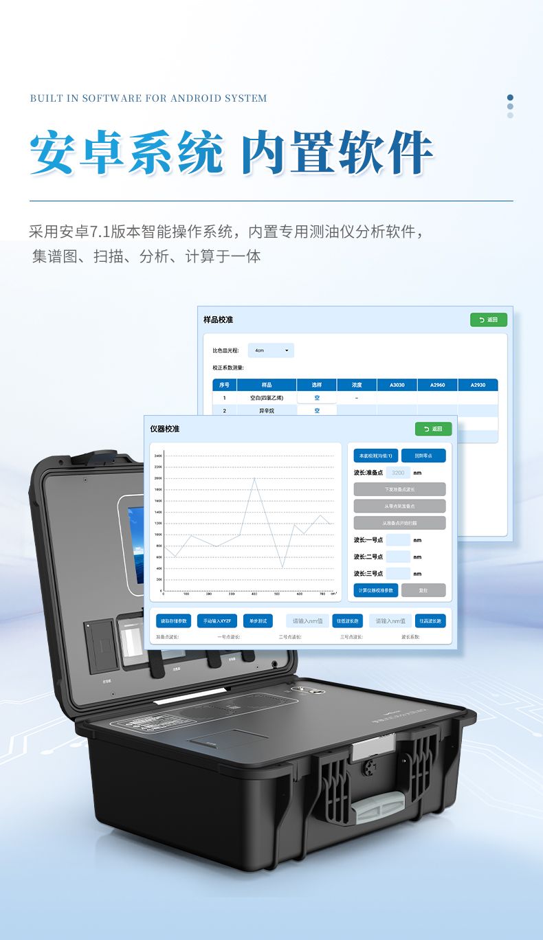 1)本產(chǎn)品采用了國標規(guī)定的校正系數(shù)法檢測原理,嚴格按照國標標準公式,使用20mg/L正十六烷,20mg/L異辛烷,100mg/L苯進行校準,最終帶入校準公式算出儀器校正系數(shù)進行測量樣品(也可以使用標準曲線法進行檢測);