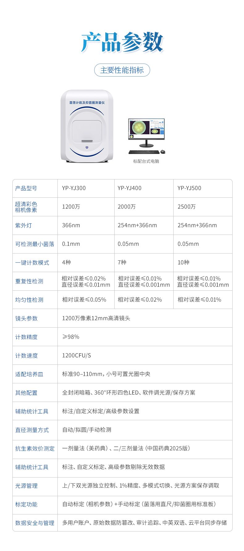 本產品是一款集圖像采集、數據處理與統計分析于一體的菌落計數及抑菌圈測量儀,廣泛應用于食品、藥品、化妝品、環境監測、醫療衛生、科研院校等領域。儀器采用先進的數字圖像處理技術,具備熒光菌識別、抑菌圈測量及效價測定和殺菌功能,可快速精準完成培養皿內菌落的測量分析、抑菌圈測量及抗生素效價測定,大幅提升實驗效率,有效降低人工操作誤差。