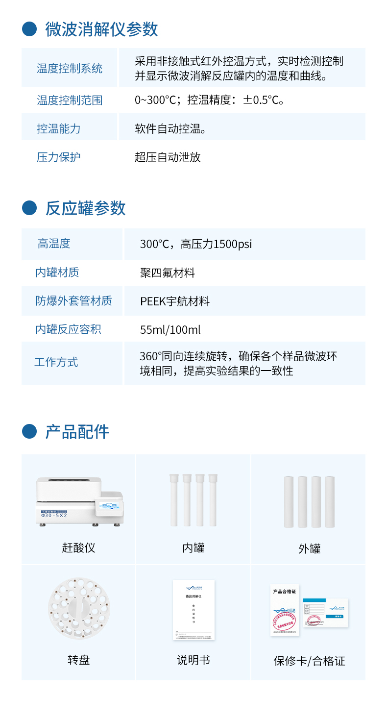 整機采用耐腐蝕腔體與優質PEEK/PTFE消解罐組件,結構堅固耐用。本儀器以其可靠的核心性能、全方位的安全保障、高效的批量處理能力及友好的智能操作,成為食品、環境、地質、冶金等行業進行高效、安全樣品消解的理想選擇。