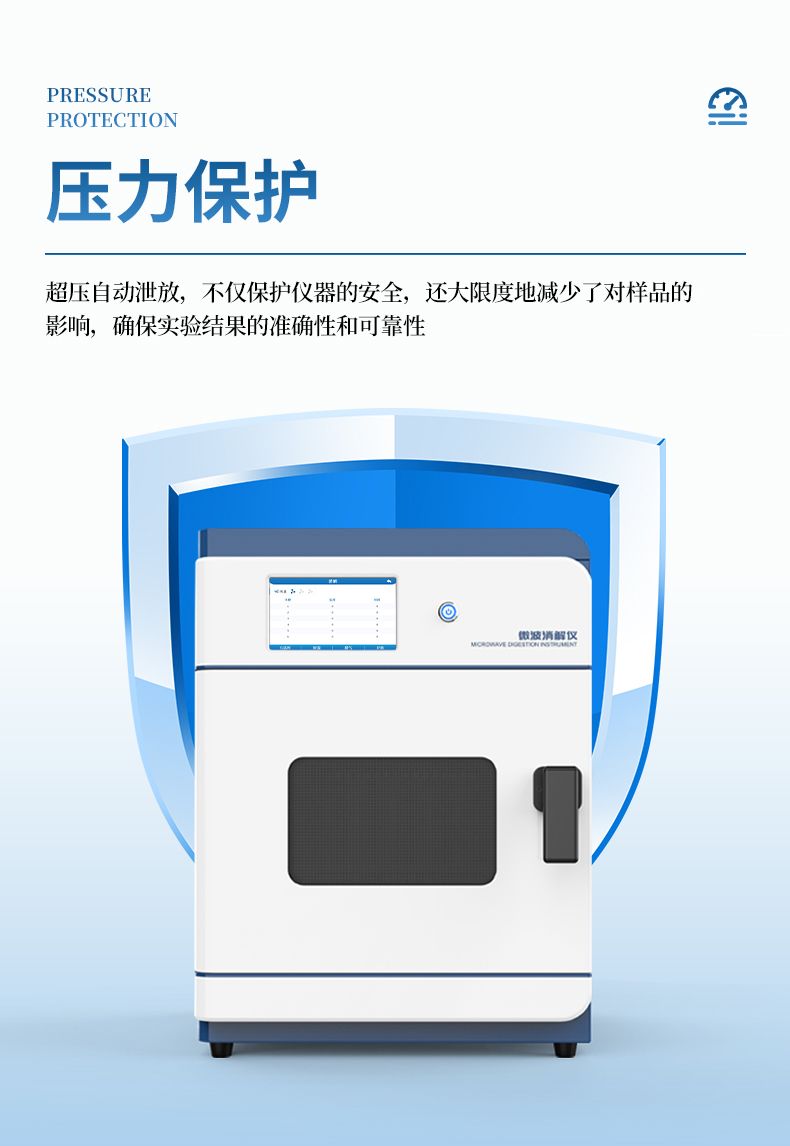 溫度控制系統:非接觸式紅外控溫,實時檢測控制并顯示微波消解反應罐內的溫度和曲線。