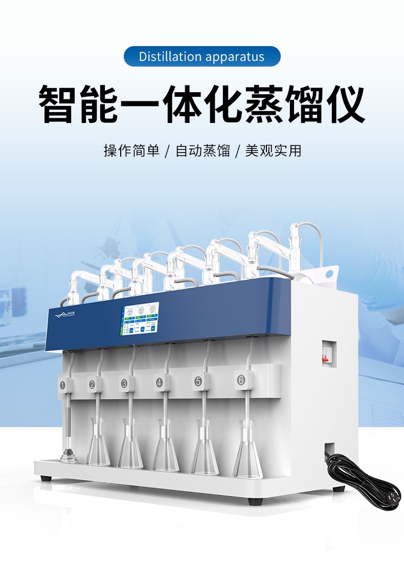 智能一體化蒸餾儀采用智能模塊化設計:方法自定義設置保存/讀取、開機自動調取使用,冷凝單元特殊定制蛇形冷凝管、智能終點控制防過量蒸餾、防倒吸保護,防干燒保護、實現了智能操作簡單、自動蒸餾、美觀實用、節能降耗、節省人工的同時為用戶做樣提高效率節約人員成本開銷。