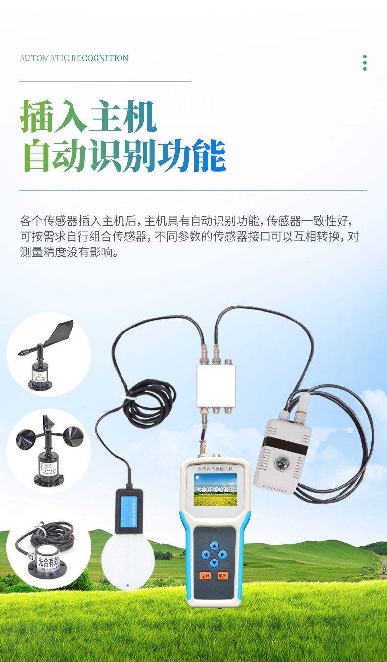 .各個傳感器插入主機后,主機具有自動識別功能,傳感器一致性好,可按需求自行組合傳感器,不同參數的傳感器接口可以互相轉換,對測量精度沒有影響。