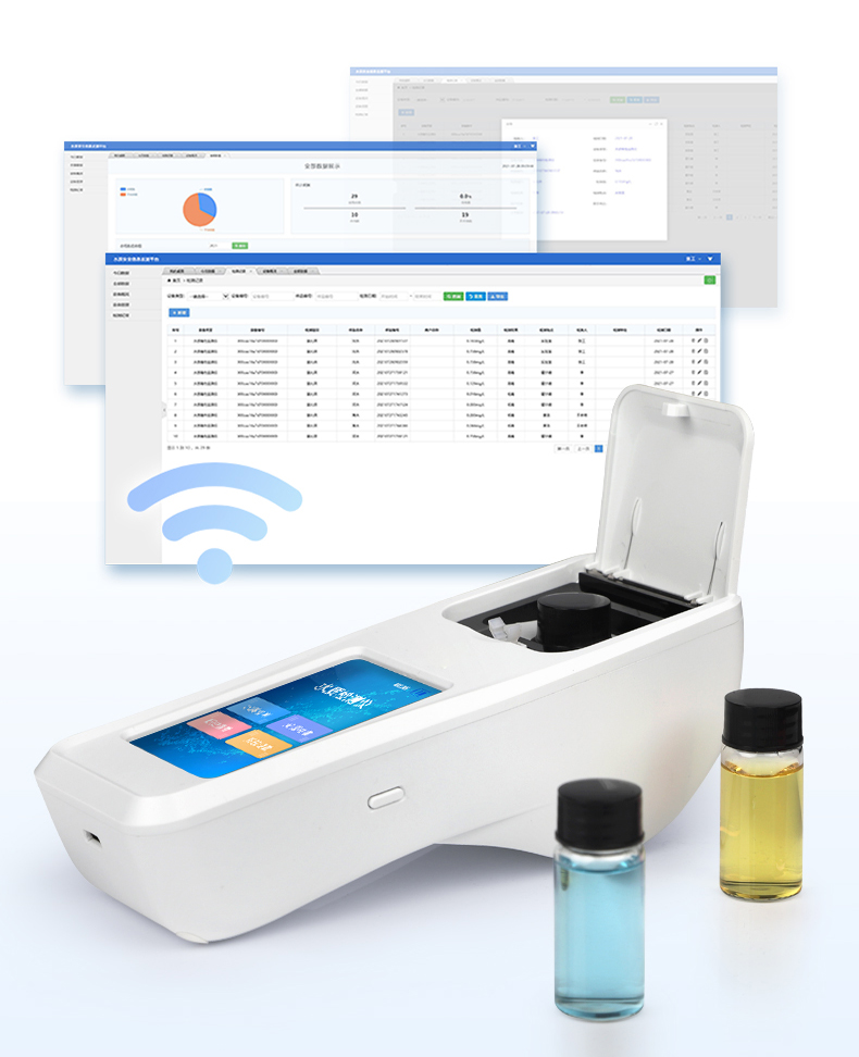②配置云監(jiān)控平臺,檢測結(jié)果可直接無線傳至平臺,進(jìn)行水質(zhì)長短期分析,輔助管理。