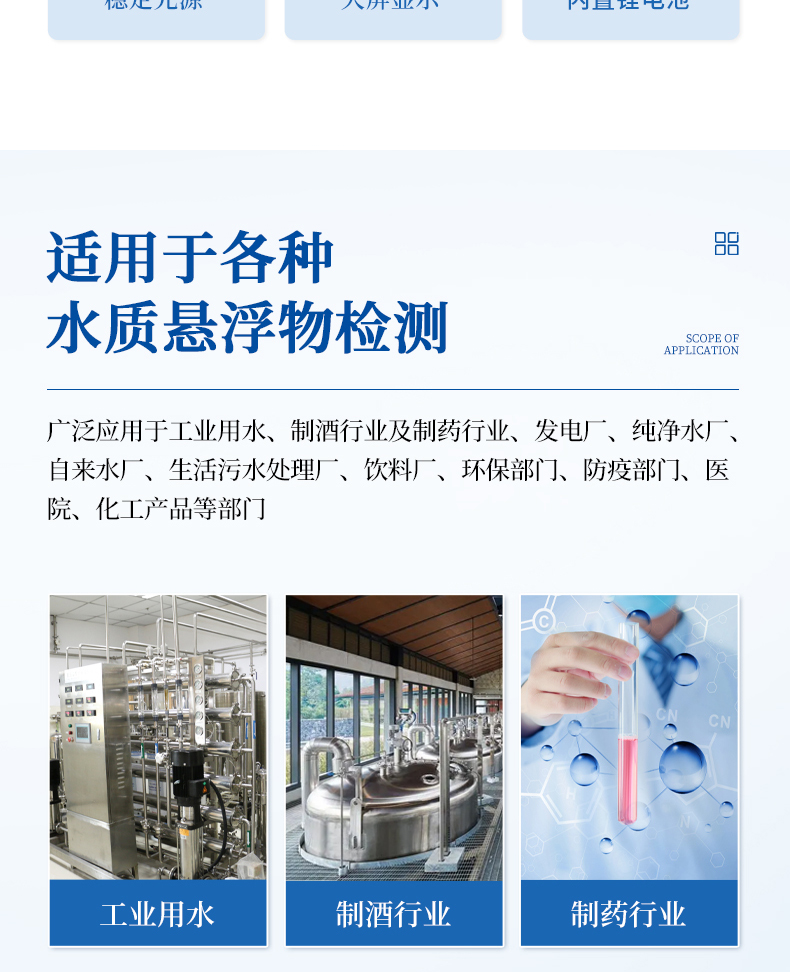 水質(zhì)懸浮物快速測定儀用于測量懸浮于水或透明液體中不溶性顆粒物質(zhì)所產(chǎn)生的光的散射程度,并能定量表征這些懸浮顆粒物質(zhì)的含量.