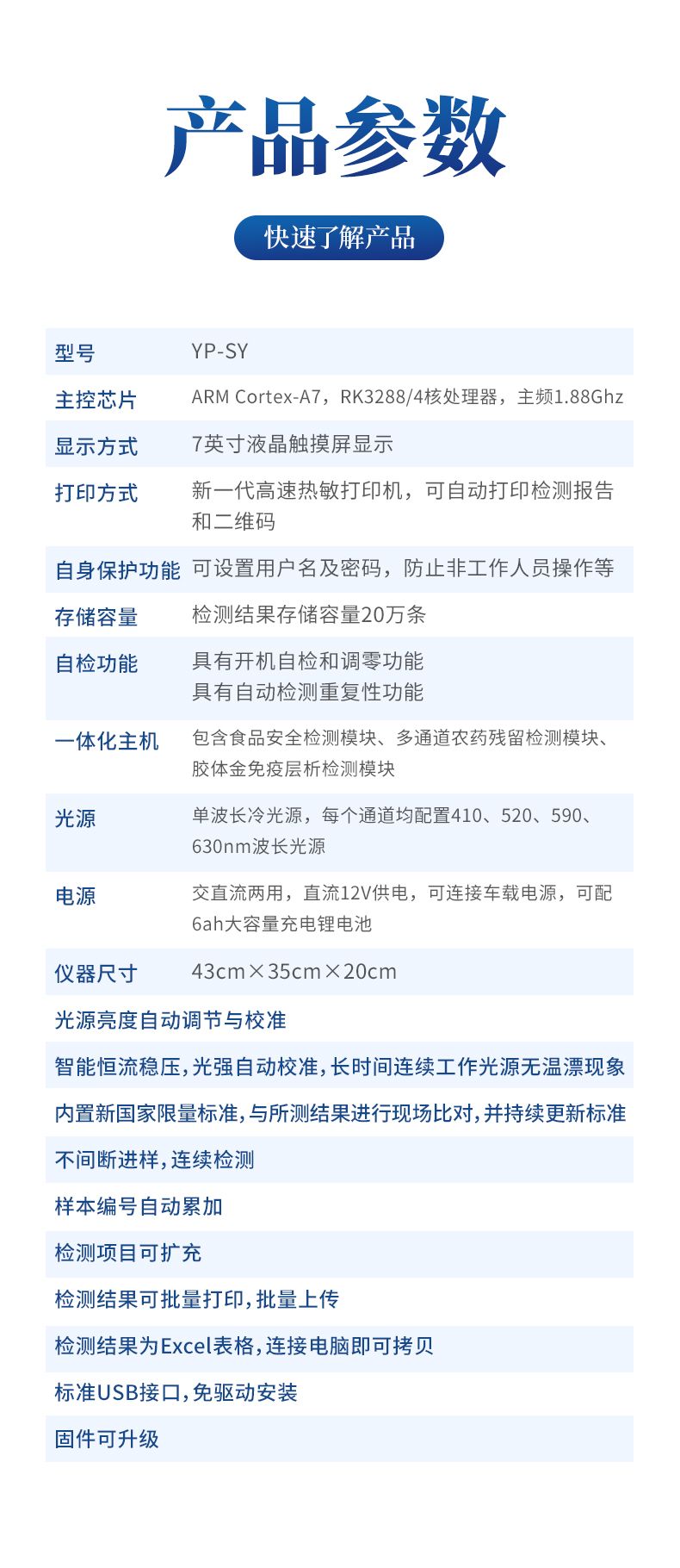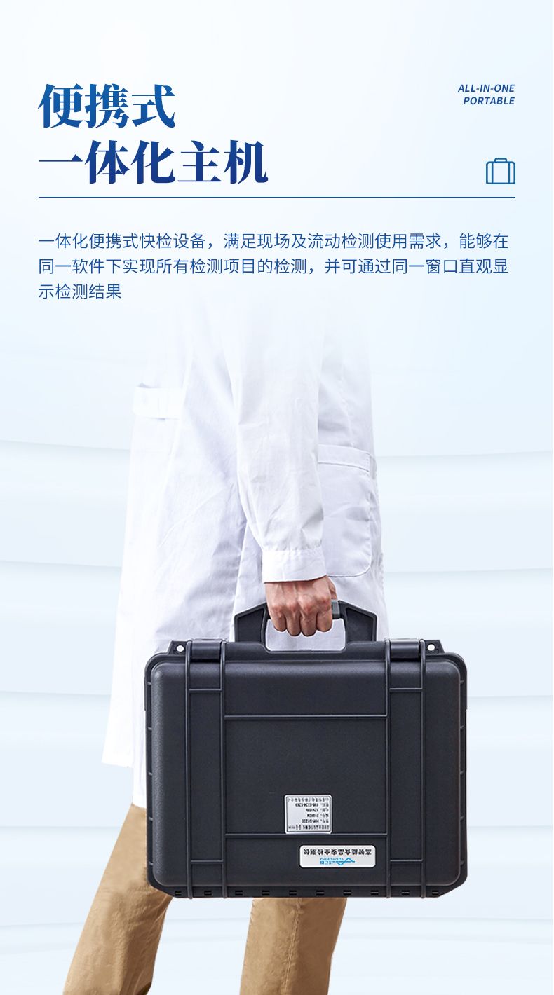 6、一體化便攜式快檢設備,滿足現場及流動檢測使用需求,能夠在同一軟件下實現所有檢測項目的檢測,并可通過同一窗口直觀顯示檢測結果。