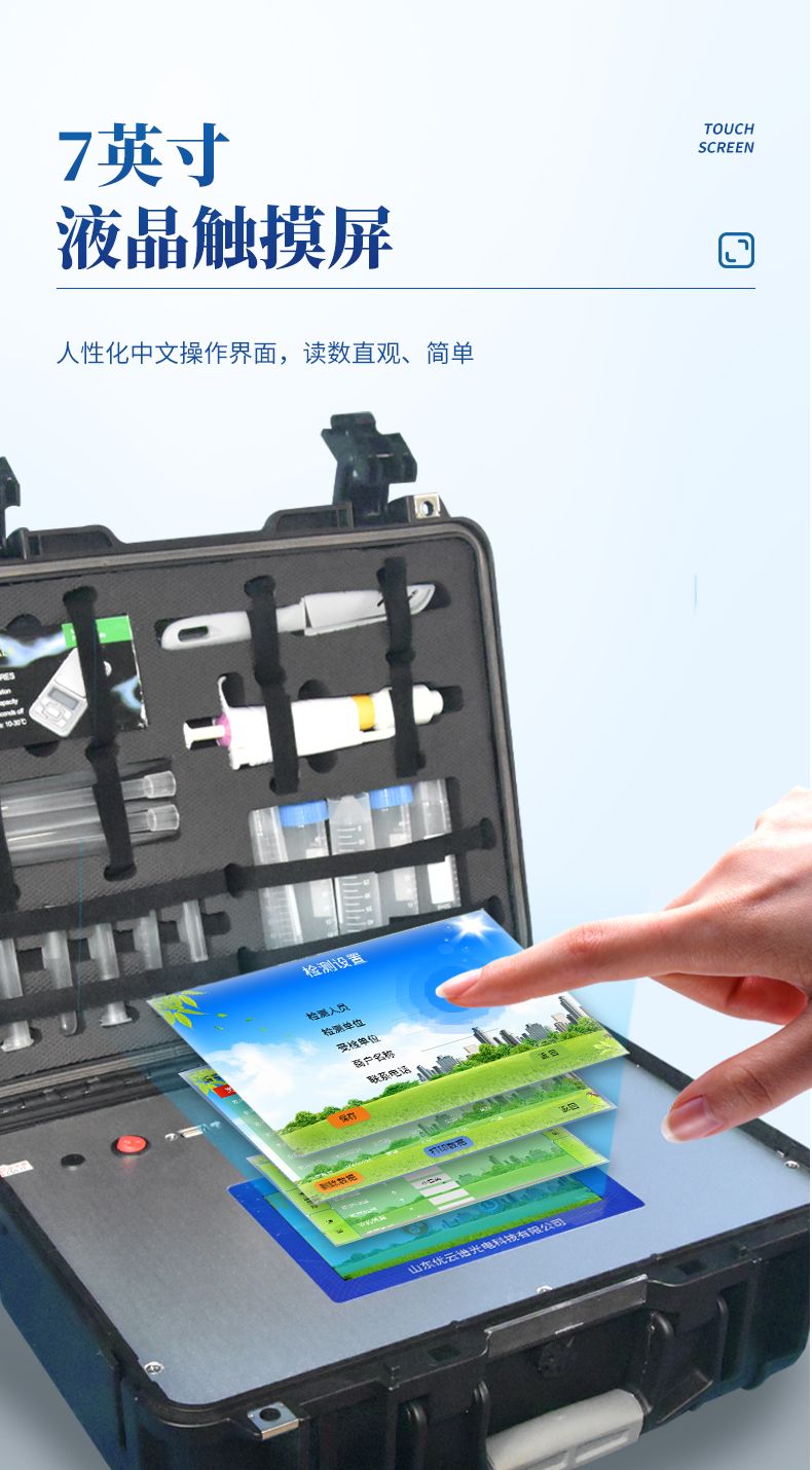 2、顯示方式:7英寸液晶觸摸屏顯示,人性化中文操作界面,讀數直觀、簡單。
