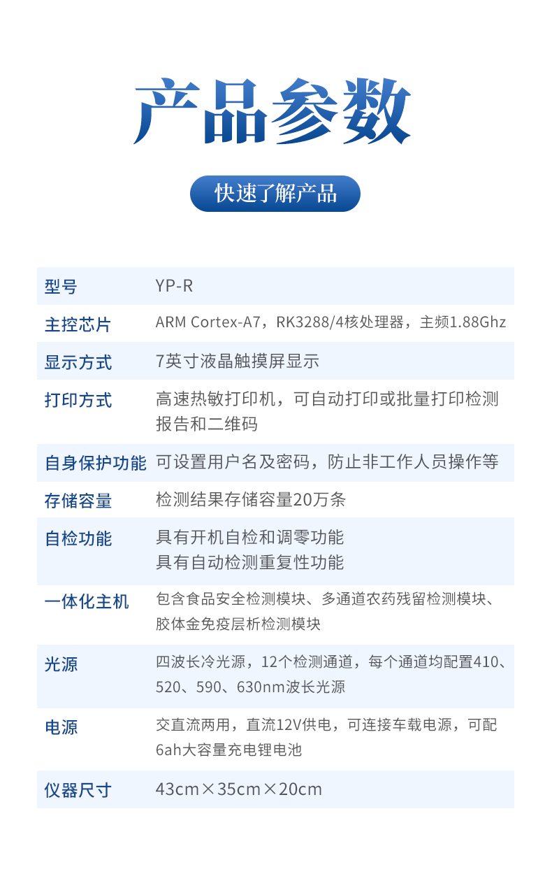 【產(chǎn)品簡介】智能安卓操作系統(tǒng),帶膠體金檢測模塊,內(nèi)置國家限量標準,18通道檢測