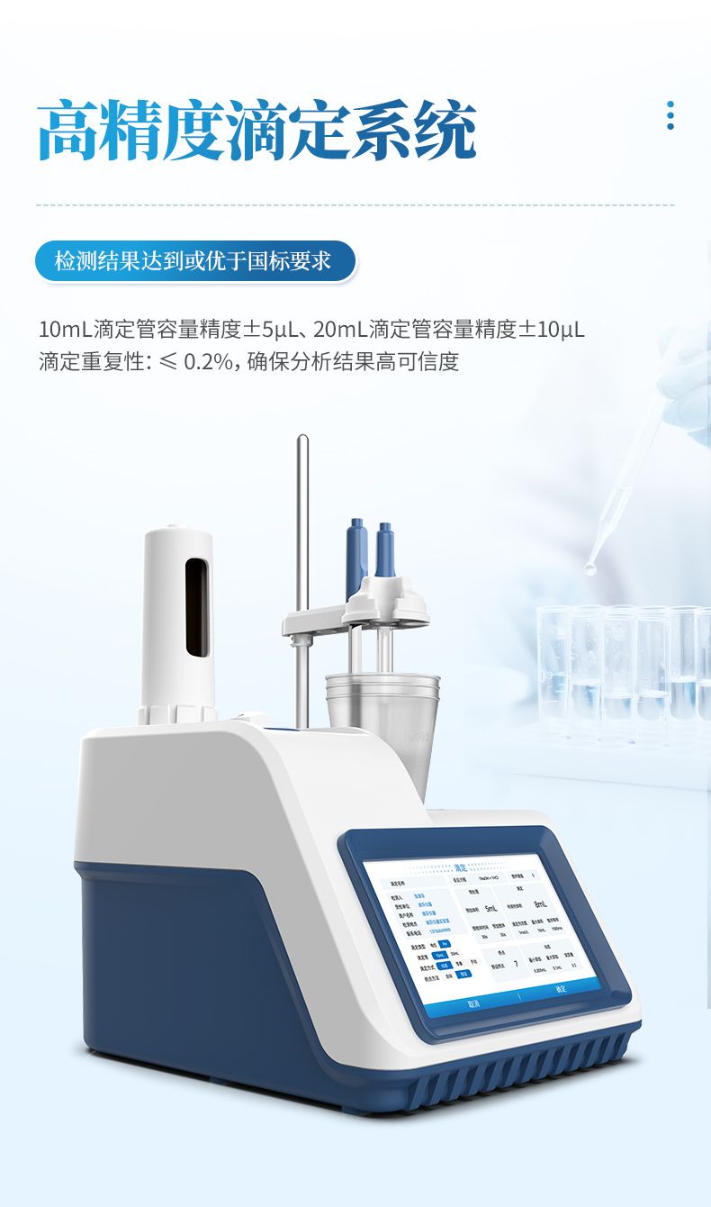 2.高精度滴定系統(tǒng),檢測結(jié)果達到或優(yōu)于國標要求。支持滴定管快速更換,維護便捷;