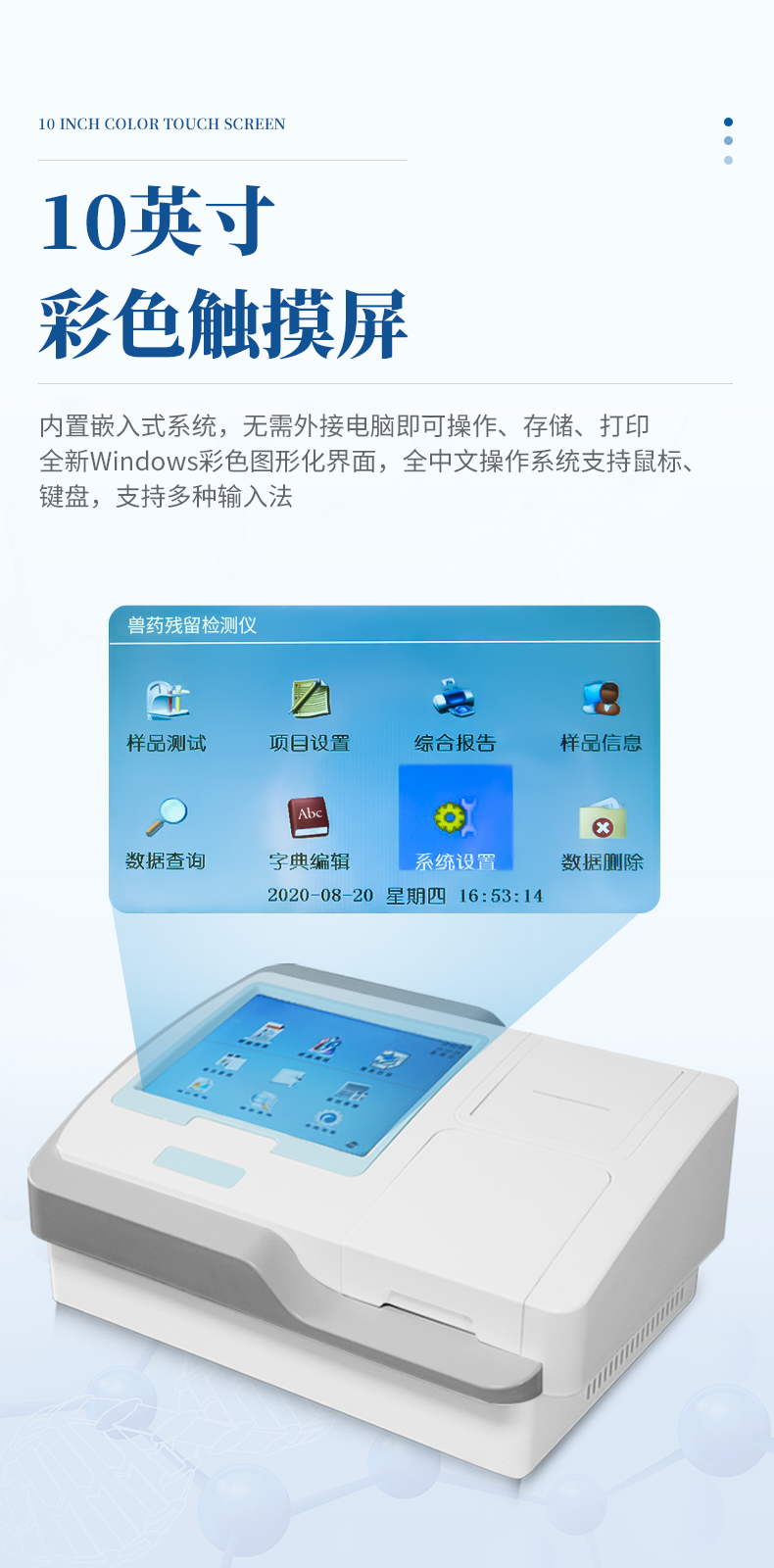 *10.4英寸彩色液晶觸摸屏輸入,大屏顯示,操作快捷;