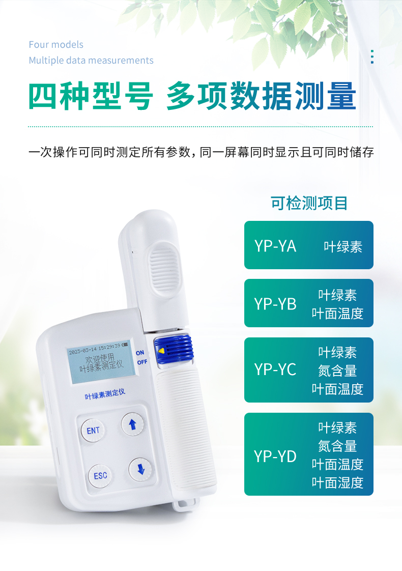 氮含量:±0.5mg/g 葉面濕度:±0.5RH% 葉面溫度:±0.2℃