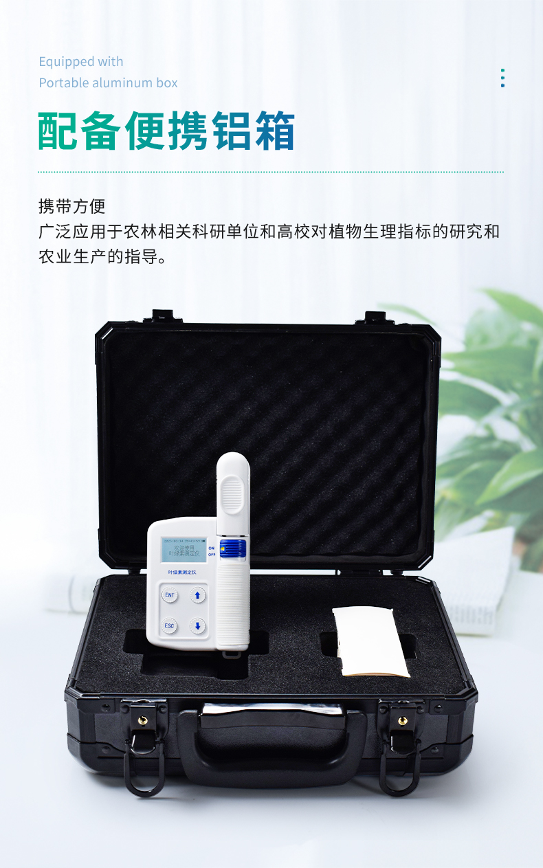 葉綠素測定儀根據(jù)葉綠素光譜吸收規(guī)律,采用兩種不同的發(fā)光管照射葉片,通過測量透過葉片的光的強(qiáng)度計(jì)算出葉片內(nèi)的葉綠素相對(duì)含量或者綠色程度,從而為合理、適當(dāng)、及時(shí)施肥提供可靠的科學(xué)依據(jù),廣泛應(yīng)用于農(nóng)業(yè)、林業(yè)、植物等科學(xué)研究和生產(chǎn)指導(dǎo)。