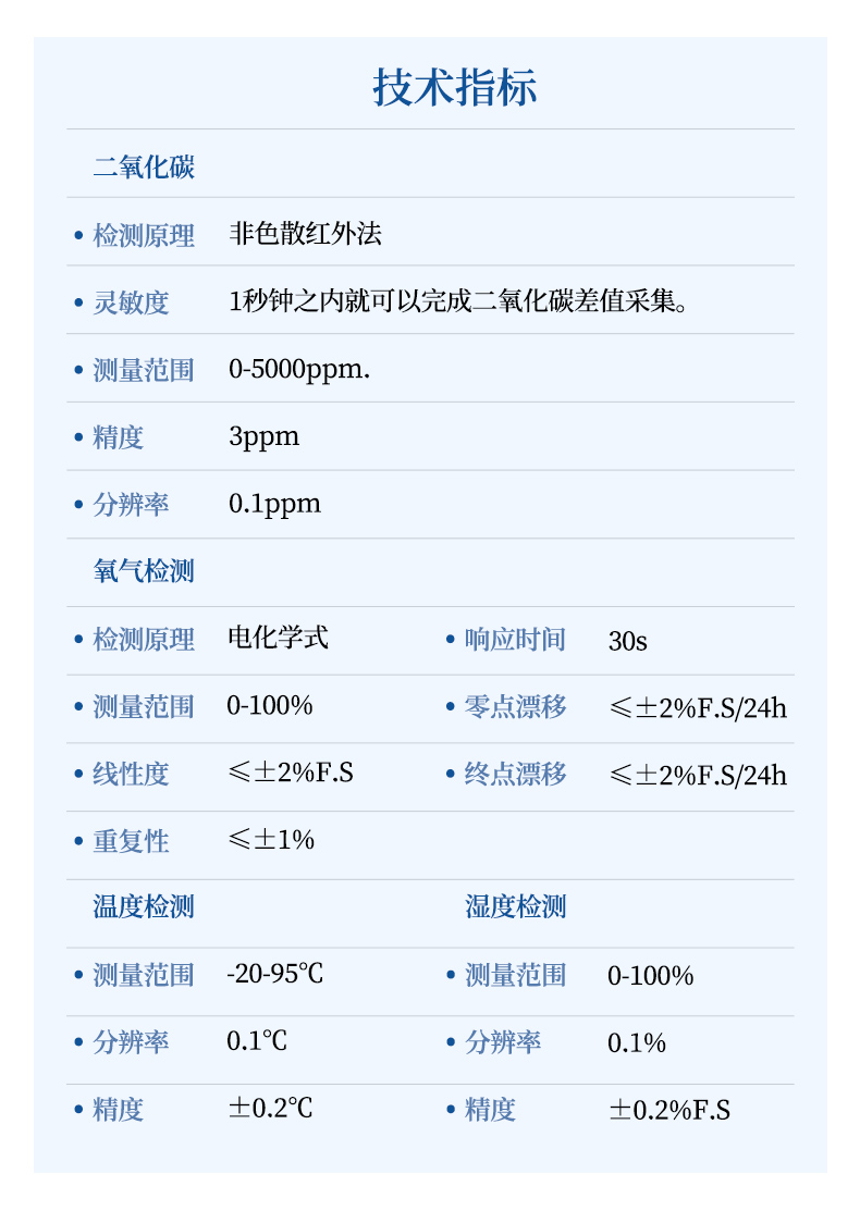 靈 敏 度 : 1秒鐘之內就可以完成二氧化碳差值采集。