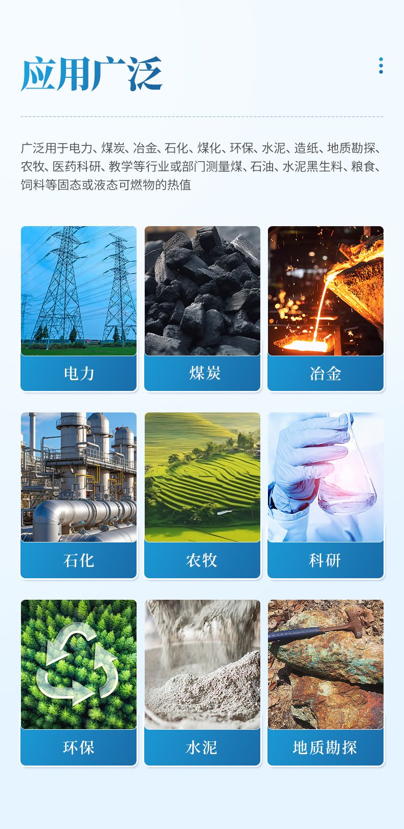本儀器適用于電力、煤炭、冶金、石化、煤化、環保、水泥、造紙、地質勘探、農牧、