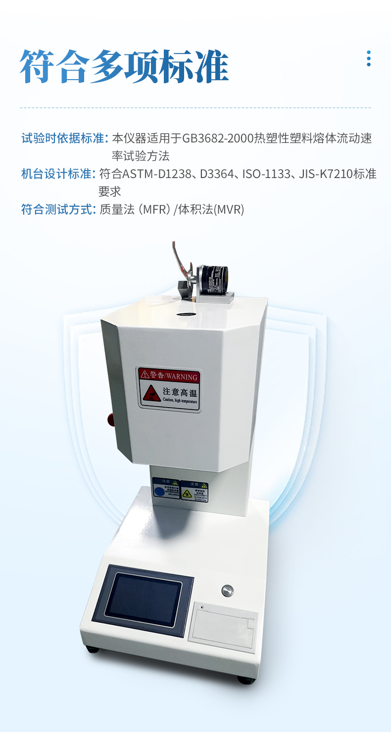用于測定各種塑膠、樹脂在粘流狀態時熔體流動速率MFR值,它既適用于熔融溫度較高的聚碳酸酯、聚芳砜、氟塑料、尼龍等工程塑料,也適用于聚乙烯(PE)、聚苯乙烯(PS)、聚丙烯(PP)、ABS樹脂、聚甲醛(POM)、聚碳酸酯(PC)樹脂等熔融溫度較低的塑料測試,廣泛地應用于塑料生產,塑料制品、石油化工等行業以及相關院校、科研單位和商檢部門。