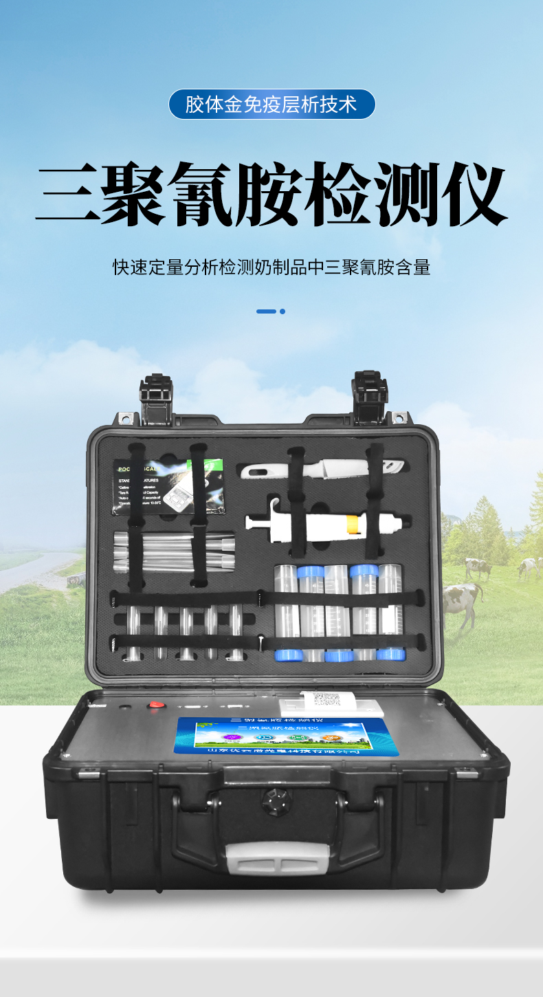 三聚氰胺檢測儀可快速定量分析檢測奶粉、純牛奶、酸奶、酸乳、果乳等奶制品、其它食品以及飼料中的三聚氰胺含量。從原料采購到成品檢驗均可使用,三聚氰胺檢測儀廣泛應(yīng)用于乳制品加工、養(yǎng)殖場、食藥監(jiān)局、衛(wèi)生部門、農(nóng)業(yè)部門、檢驗檢疫等部門使用。