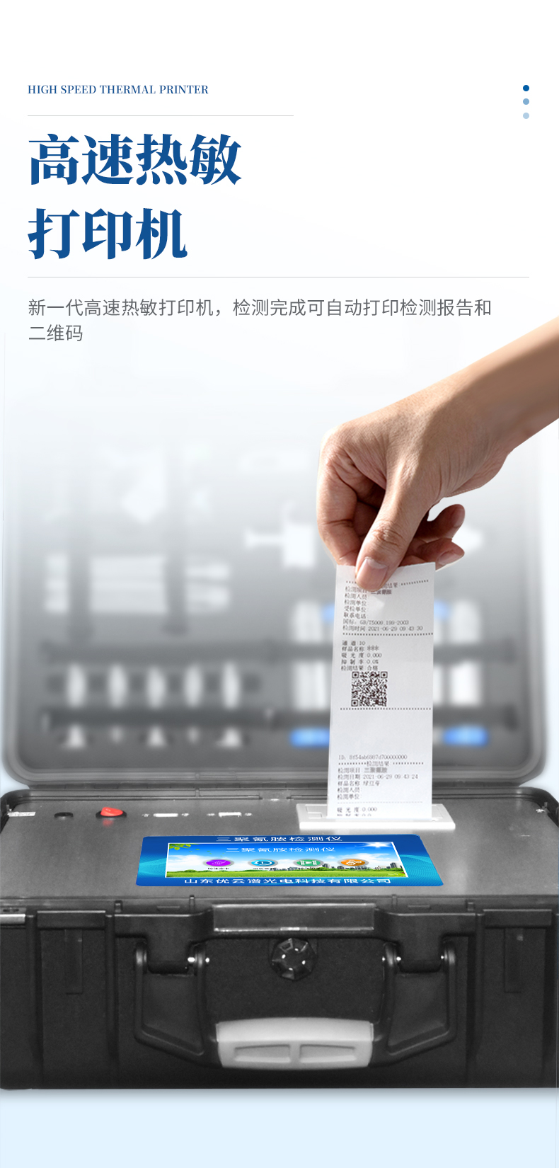 3、新一代高速熱敏打印機,檢測完成可自動打印檢測報告和二維碼。