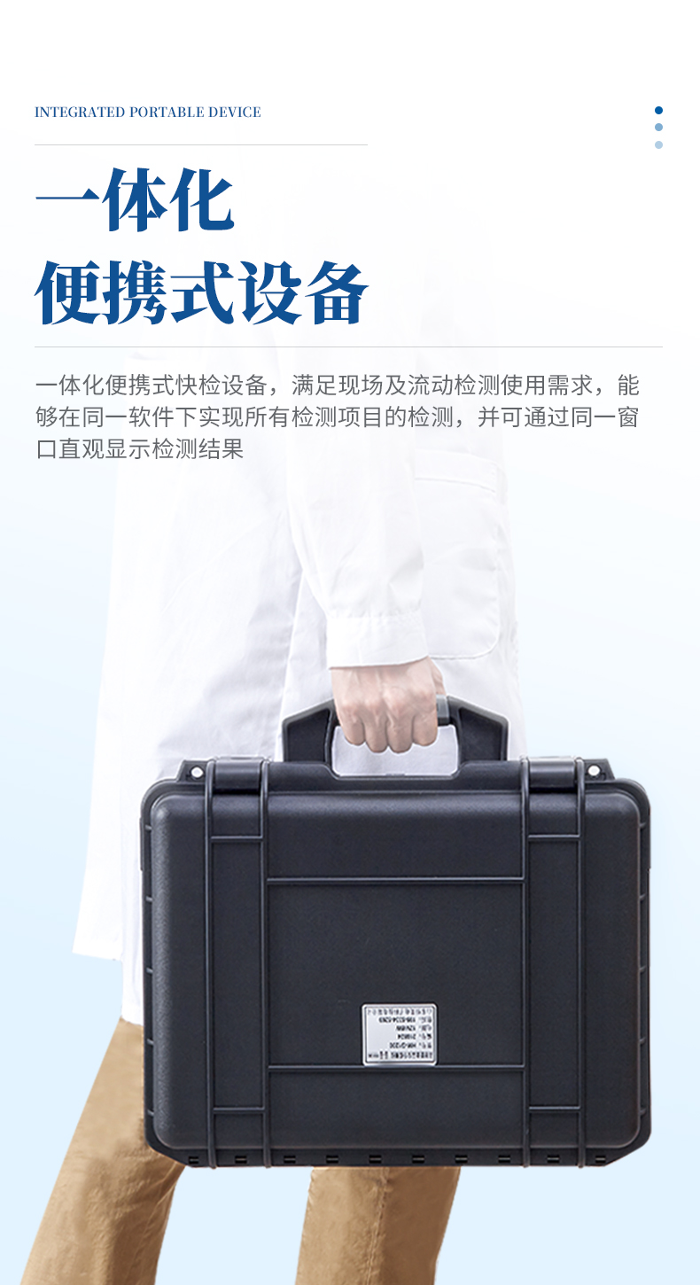 5、一體化便攜式快檢設(shè)備,滿足現(xiàn)場及流動檢測使用需求,能夠在同一軟件下實現(xiàn)所有檢測項目的檢測,并可通過同一窗口直觀顯示檢測結(jié)果。