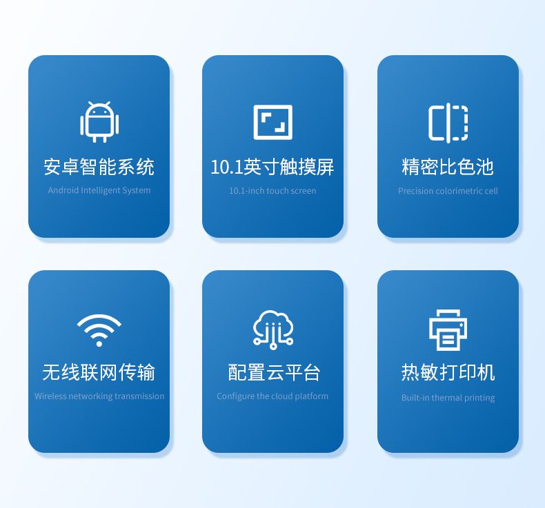 3.采用精密比色池設(shè)計,使用光源一致,可以解決由于光源誤差帶來的檢測結(jié)果誤差問題,檢測結(jié)果更加精準(zhǔn);