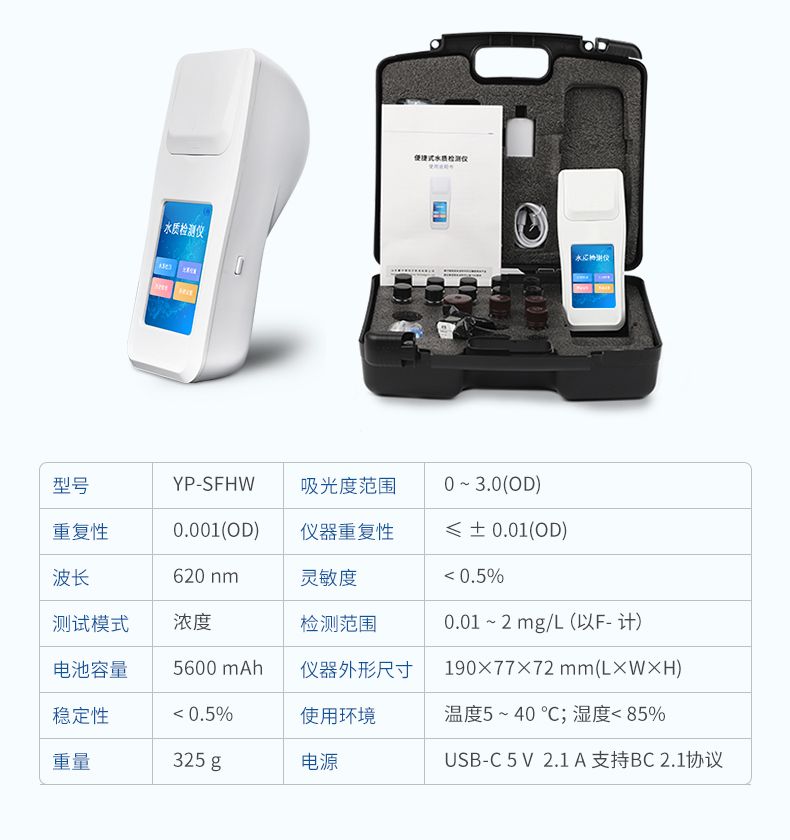手持式水質(zhì)氟化物檢測儀是一款基于氟試劑分光光度法開發(fā)的便攜式專業(yè)設(shè)備,專為快速、準(zhǔn)確評估水質(zhì)安全而設(shè)計。