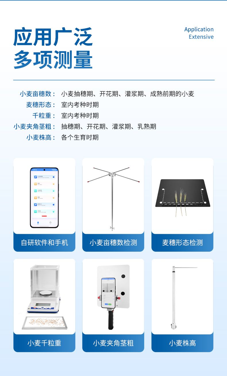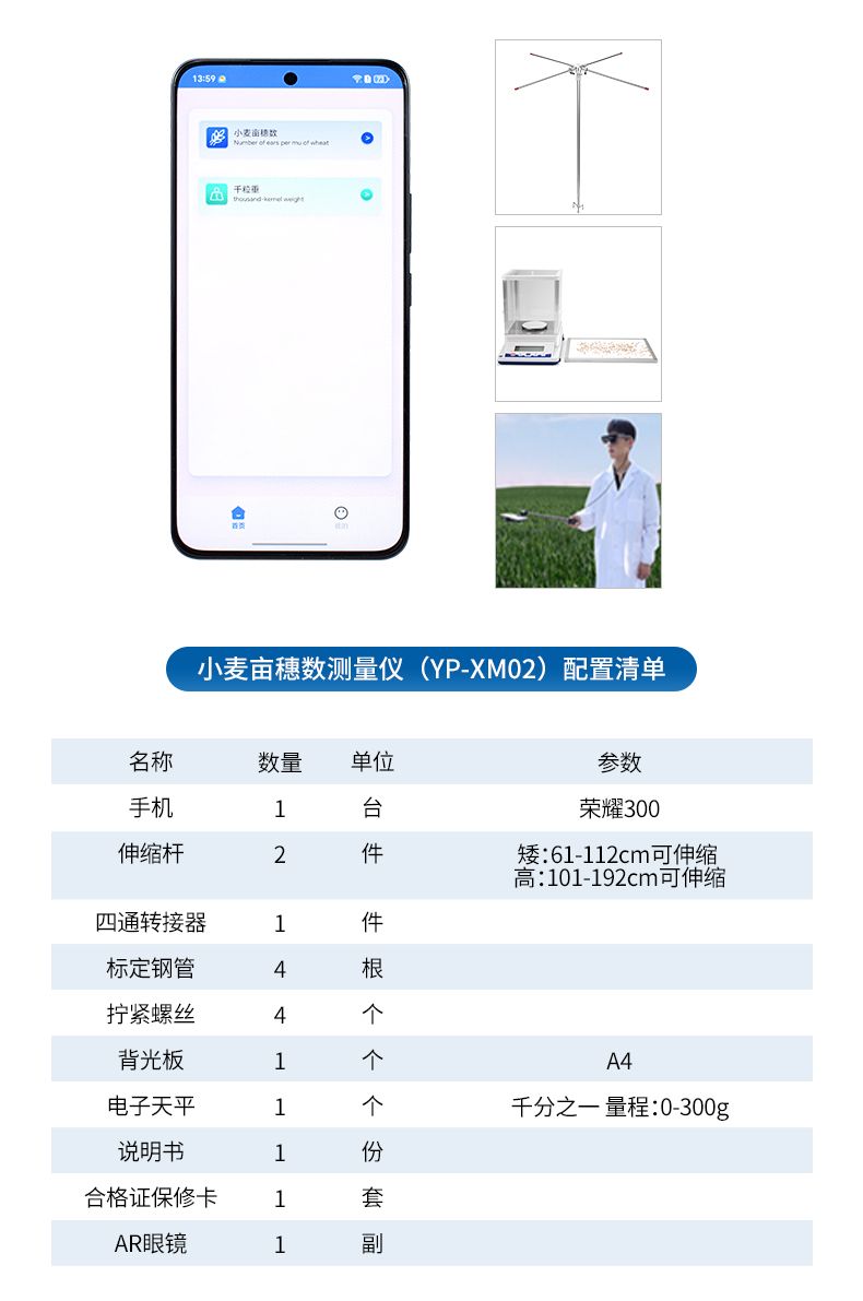 【產(chǎn)品簡介】小麥株高測量、小麥畝穗數(shù)測量、小麥千粒重、夾角莖粗測量、麥穗形態(tài)測量(AR眼鏡版)
