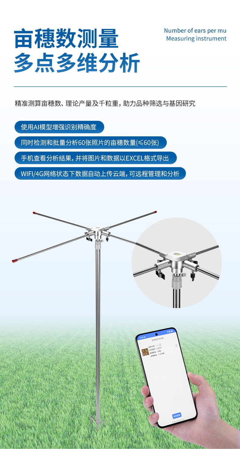小麥畝穗數(shù)測量主要用于快速、準(zhǔn)確地測量單位面積內(nèi)的小麥穗數(shù)。該設(shè)備結(jié)合圖像識別技術(shù)、人工智能算法與高分辨率攝像系統(tǒng),通過對實地拍攝的小麥圖像進(jìn)行分析,自動識別并計數(shù)麥穗數(shù)量,極大地提高了測量效率與準(zhǔn)確性。