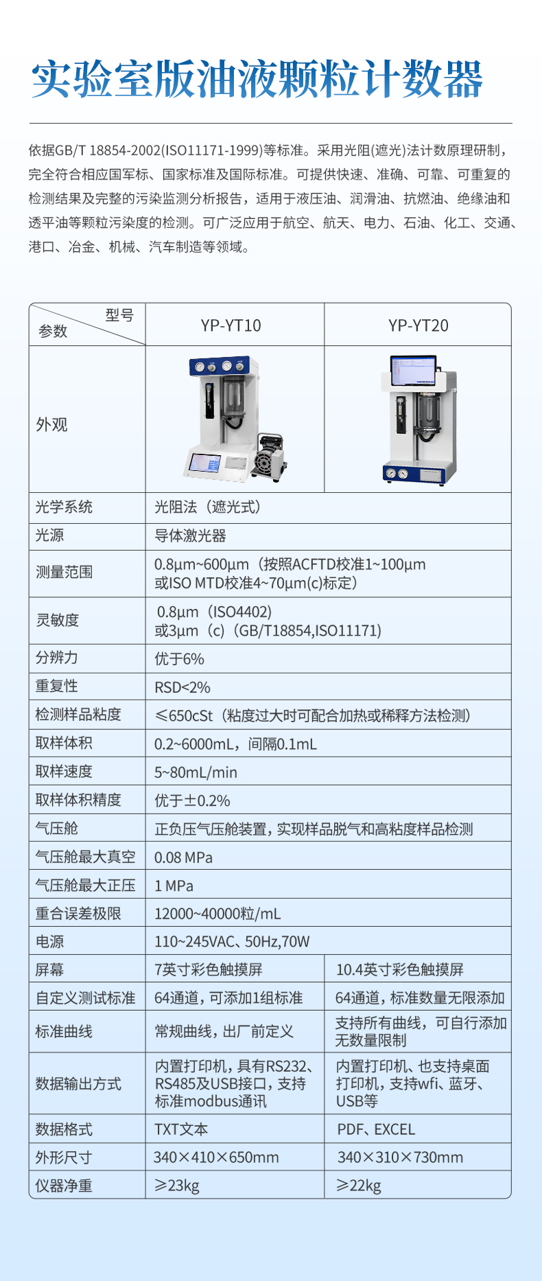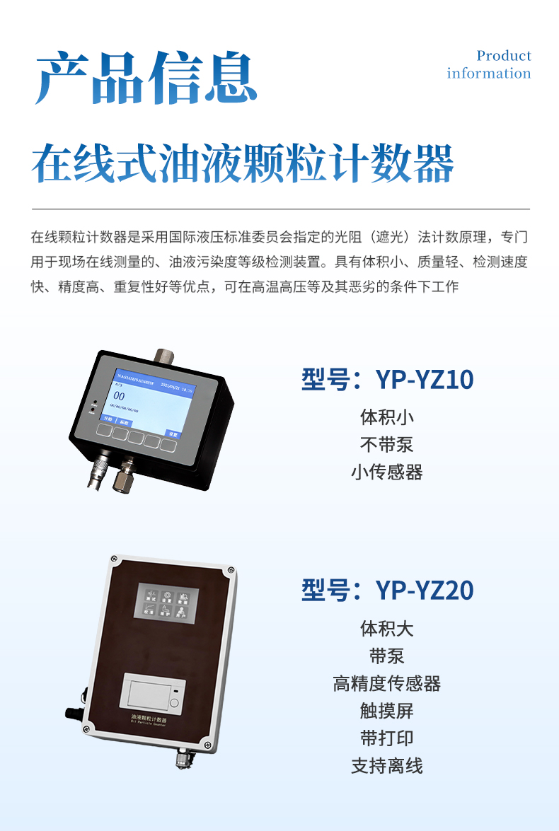 YP-YZ20在線(xiàn)顆粒計(jì)數(shù)器是采用國(guó)際液壓標(biāo)準(zhǔn)委員會(huì)指定的光阻(遮光)法計(jì)數(shù)原理、依據(jù)GB/T 18854-2002(ISO11171-1999)等國(guó)家及國(guó)際標(biāo)準(zhǔn)研制的專(zhuān)門(mén)用于液體中污染粒子等級(jí)檢測(cè)的裝置。可提供快速、準(zhǔn)確、可靠、可重復(fù)的檢測(cè)結(jié)果。操作簡(jiǎn)單方便,適用于多種油液系統(tǒng)的在線(xiàn)監(jiān)測(cè)。也可將兩臺(tái)(或多臺(tái))從機(jī)連接至同一主機(jī)或平臺(tái)進(jìn)行比對(duì)試驗(yàn),操作簡(jiǎn)單,組合靈活多變。可廣泛應(yīng)用于航空、航天、電力、石油、化工、交通、港口、冶金、水處理、機(jī)械、汽車(chē)制造等領(lǐng)域。