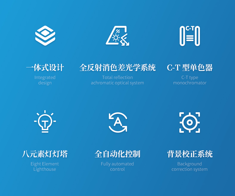 具備氘燈與自吸收兩種背景校正模式,背景信號(hào) 1A 時(shí),扣背景能力 40 倍以上。