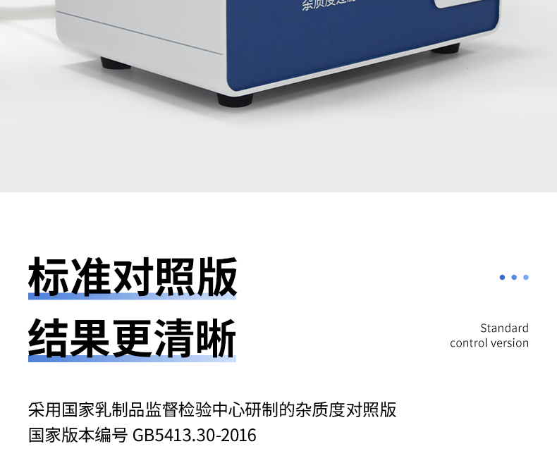 標(biāo)準(zhǔn)對照版采用國家乳制品監(jiān)督檢驗中心研制的雜質(zhì)度對照版,國家版本編號 GB5413.30-2016。