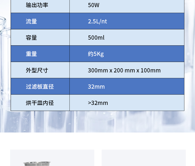 【產(chǎn)品簡介】電源:220V/50Hz 輸出功率: 50W 流量:2.5L/nt 容量:500ml