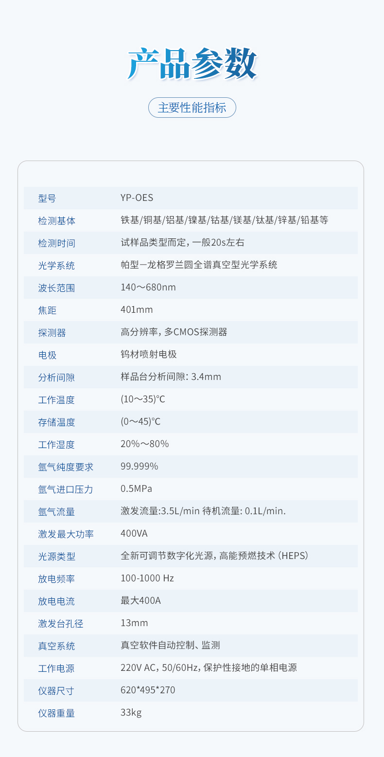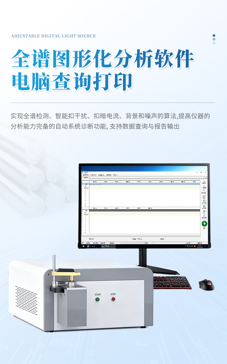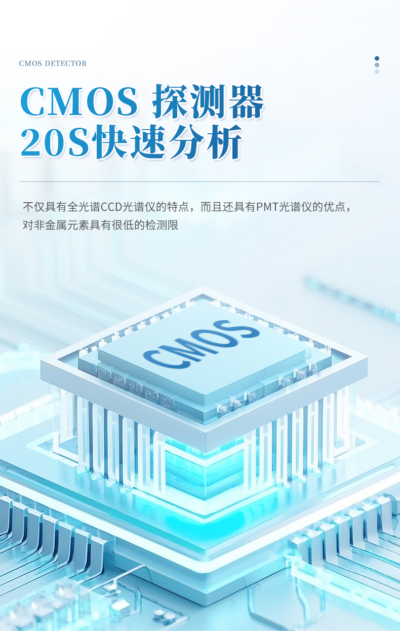 直讀光譜使用日本Hamamatsu公司最先進的CMOS信號采集元件,每個CMOS可以分別設置火花的數量。它采用真空光室設計和全數字激發光源。該CMOS光譜儀不僅具有全光譜CCD光譜儀的特點,而且還具有PMT光譜儀的優點,對非金屬元素具有很低的檢測限。整機的設計合理。它還具有操作簡便,測試精度高,長期穩定等優點。