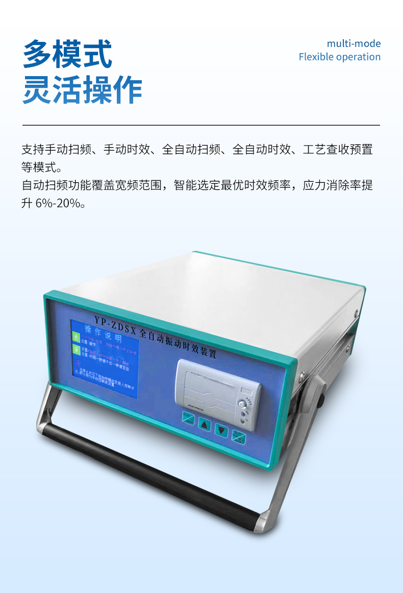 ● 具有手動(dòng)掃頻、手動(dòng)時(shí)效、全自動(dòng)掃頻、全自動(dòng)時(shí)效、工藝查收預(yù)置等多種工作模式