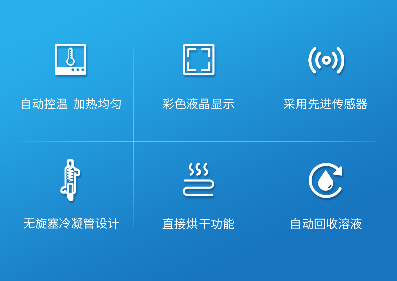 5.★采用先進的傳感器,確保設(shè)定的溫度保持不變,使用溶劑不會達到燃點,提高系