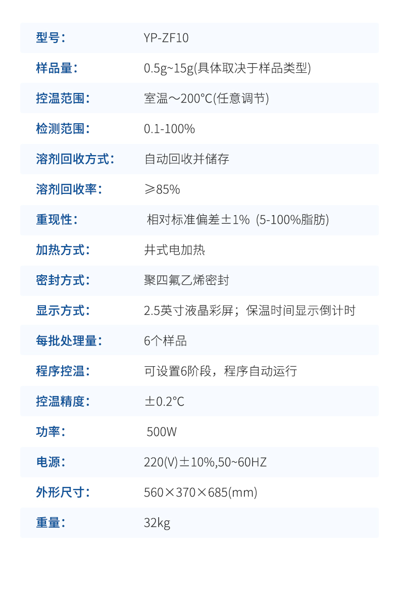 樣品量: 0.5g~15g(具體取決于樣品類型)