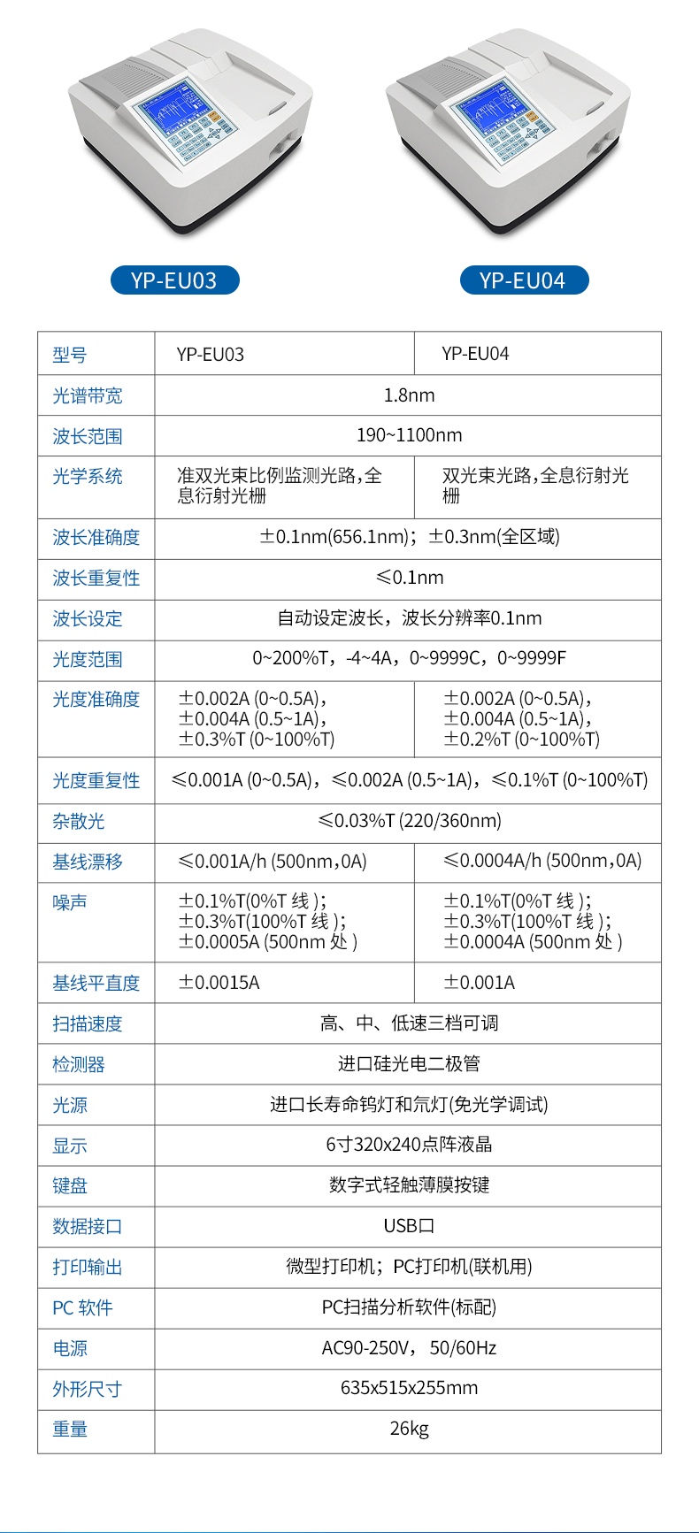 雜散光≤0.03%T (220/360nm)